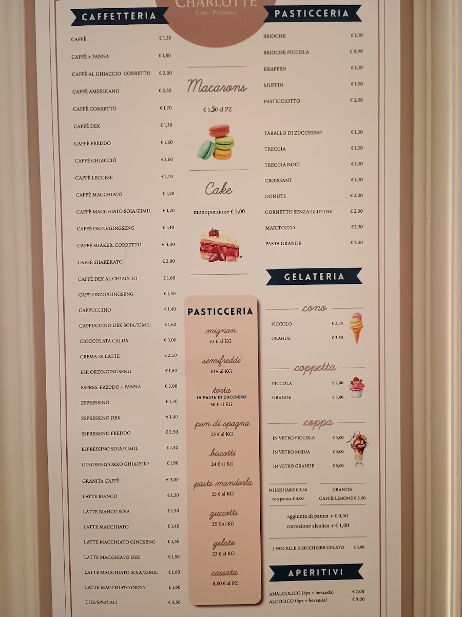 Welcome to Pasticceria Charlotte, a delightful cafe nestled in the heart of Trani, Italy. Located at Via Cavour, 77, this charming patisserie is more than just a place to grab a quick coffee; it’s a haven for anyone who appreciates the artistry of fine pastries and the comfort of a welcoming vibe.