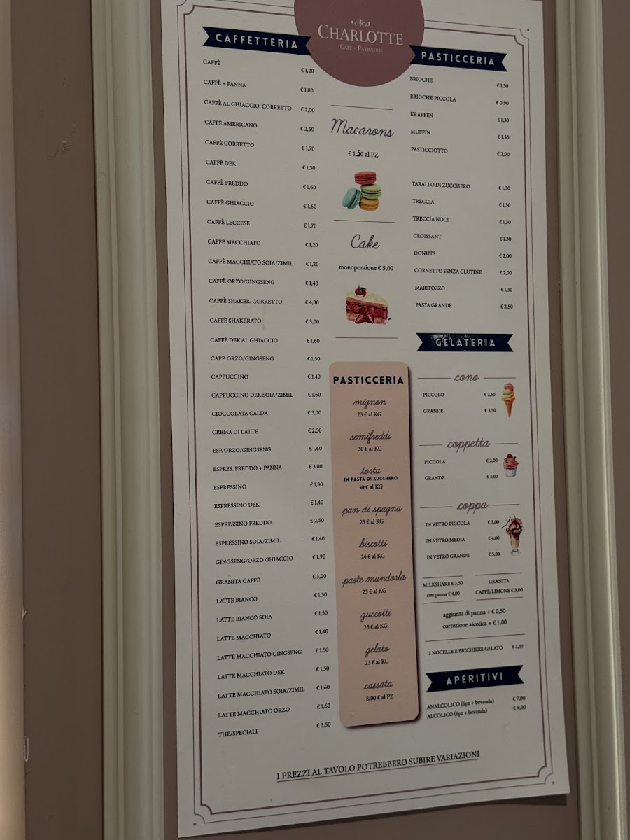 Pasticceria Charlotte isn’t just a cafe; it’s a cherished local gem that draws you in with its charm and artistry, making it a perfect stop en route from the station into town or a destination all on its own. Whether you’re a coffee aficionado seeking that perfect brew, or a sweet tooth craving a unique taste of local pastries, your visit here is bound to be a fantastic experience. So, whether you're indulging in a light bite or simply sipping your espresso, Pasticceria Charlotte is waiting to serve up some magic that you won’t soon forget!